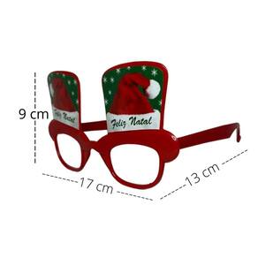 Descrição óculos cartola feliz natal personalizado para sua comemoração - óculos confeccionado em material plástico - material muito leve e confortável de usar - use em festas e bares como óculos fantasia - óculos vermelho -tamanho : 9 x 17 x 13 cm Ean: 7904390969523