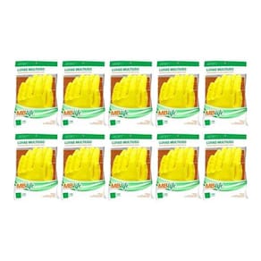 A luva de látex amarela multiuso mblife é extremante confortável por ser de borracha natural, possui forro de algodão e textura na palma da mão e ponta dos dedos, garantindo que você consiga segurar objetos molhados e escorregadios com mais firmeza e segurança evitando acidentes.