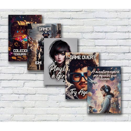 10 Placas decorativas gamer produzidas em MDF 3mm com impressão de alta qualidade e cores vibrantes, na embalagem com furo pronta para expor em seu comercio