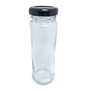 Conteúdo do pacote: Pote de vidro 100 ml: 10 unidades Tampa Metálica Preta : 10 unidades