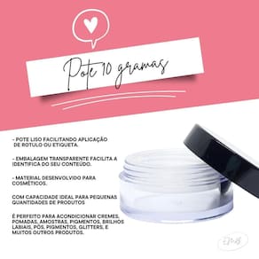 Pote de 10g, você terá espaço suficiente para acondicionar suas maquiagens favoritas, como sombras, batons, pigmentos, brilhos labiais, entre outros sejam em pó, cremosos ou líquidos.