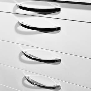 Cromado é a escolha perfeita para quem busca aliar elegância e modernidade aos móveis. O acabamento cromado dos puxadores da DEKI MÓVEIS CLÍNICOS proporciona um brilho sofisticado, destacando-se em qualquer ambiente, além de ser extremamente resistente a riscos e fácil de limpar. Sua aparência metálica reflete a luz de maneira única, adicionando um toque de luxo que transforma a estética dos móveis, tornando-os visualmente mais atraentes e contemporâneos.