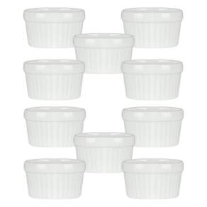 10 Ramekin de Porcelana Classic Branco 6cm x 4cm Lyor Sirva seus molhos e suas sobremesas com muito mais estilo com o Ramequim de Porcelana Esse lindo ramequim é feito todo em porcelana branca, com o tradicional relevo de listras verticais dessas peças. Com esse lindo Ramequim de Porcelana Branca as suas refeições ficam ainda mais chiques e apetitosas