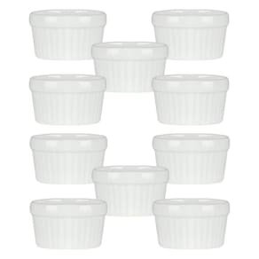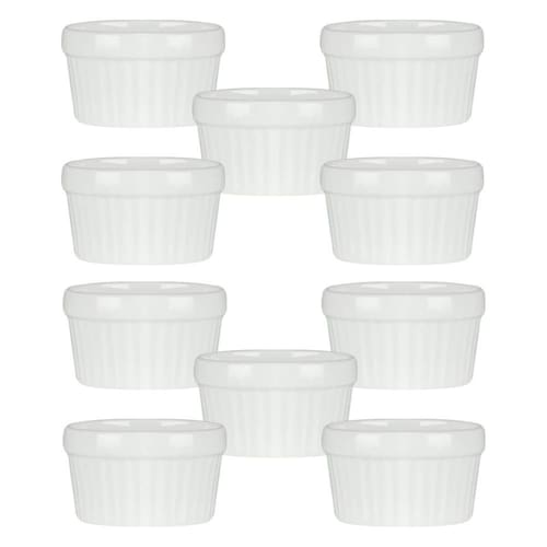 10 Ramekin de Porcelana Classic Branco 6cm x 4cm Lyor Sirva seus molhos e suas sobremesas com muito mais estilo com o Ramequim de Porcelana Esse lindo ramequim é feito todo em porcelana branca, com o tradicional relevo de listras verticais dessas peças. Com esse lindo Ramequim de Porcelana Branca as suas refeições ficam ainda mais chiques e apetitosas