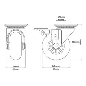 Medidas de cada rodízio: 3,5 cm x 4,9 cm x 5,5 cm (L x A x P)