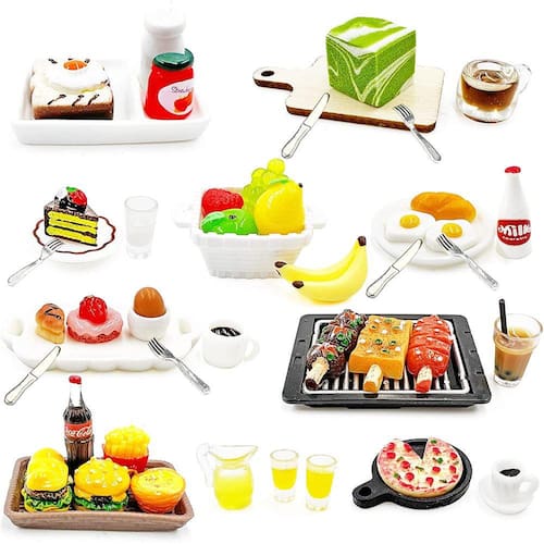 EXCELENTE MATERIAL estes mini brinquedos de cozinha são feitos de resina de qualidade para durabilidade, seguro e resistente; não é fácil de quebrar ou desbotar, resistente à queda, Kid seguro, Sem metais pesados, cores ricas.
