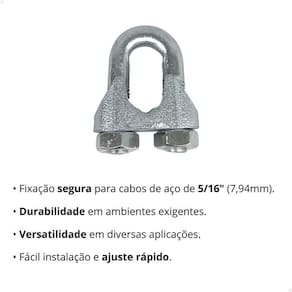 10 un grampo para cabo de aço 5/16 presilha para cerca elétrica Tamanho: 5/16 - 7,94 mm Quantidade: 10 un grampo para cabo de aço 5/16 Especificações técnicas: ======================== Tamanho: 5/16 polegadas - 7,94 mm Qualidades e diferenciais: ========================== Fixação segura; Instalação fácil e rápida; Durabilidade em ambientes exigentes; Versatilidade em diversas aplicações; do vendedor: 90 dias Marca: Bullcom