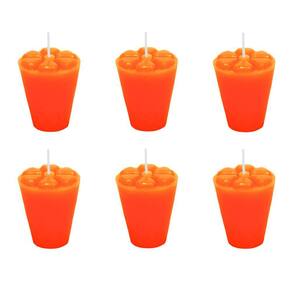 10 velas refil laranja copinho de pinga decoração 12 horas 10 velas laranja refil para o copinho de vidro Não acompanha o copinho de vidro Medidas da vela: - altura: 5,2 cm diâmetro superior boca : 4,5 cm diâmetro inferior base : 2,7 cm Produtos da marca velitas. Somos uma fábrica, de velas e ferros decorativos, com mais de 32 anos de experiência. Copinho de vidro - o copo de vidro, para qual a vela foi produzida, é da nadir figueiredo, além de ser resistente ele é facilmente encontrado em vários lugares no brasil. Medidas do copo: Altura: 7 cm diâmetro superior boca : 5,2 cm diâmetro inferior base : 3,5 cm - foto da vela no compinho meramente ilustrativa, copo não acompanha produto. Velas: -velas de parafina pura, contêm apenas corante nas velas coloridas. - a vela pura garante uma maior durabilidade, não produz fumaça preta que possa sujar a parede ou criar um aspecto desagradável, e também possui um cheiro suave e natural da parafina. - nossas velas foram projetadas para queimarem sem escorrer se deixadas fora de correntes de ar. - nossas velas no copinho foram projetadas para fácil reposição já que são removíveis; o produto acompanha indicações de uso para facilitar a limpeza do copo após a utilização. Duração da vela: Aproximadamente 12 horas, o tempo pode variar de acordo com a temperatura ambiente. -possuímos outras cores em outros anúncios: amarela, marfim, laranja, vermelha, rosa, lilás, azul clara e verde. Procure o mesmo nome de produto e a cor desejada para achar o anúncio da cor escolhida. Aviso de segurança:- acenda as velas longe de produtos inflamáveis, sem corrente de ar e em recipiente protetor. - não deixe velas acesas desacompanhadas. Marca: Velitas (r)