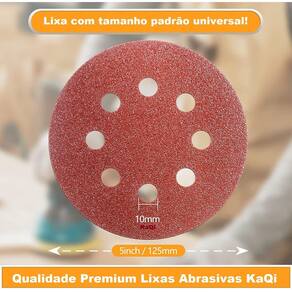 10 X Lixa Disco Grão 5 Polegadas 125mm 8 Furos Lixadeira Politriz KaQi GRÃO: 240 10 x Lixas Disco Grão 5 Polegadas 125mm. Com fixação tipo Vellcro. Pluma. 8 Furos. Perfeito para desbaste de peças com superfície regular e irregular, garantindo um acabamento uniforme devido a sua flexibilidade e poder de remoção. Pode ser utilizada em madeira, metal, aço, massa, plásticos, latão, bronze, metais não ferrosos, fibras, entre outros. Ideal para utilização em lixadeiras, politrizes, esmerilhadeiras e furadeiras. Grãos Variados. Selecione no anúncio a granulometria desejada para sua compra. Selecione o grão com atenção, uma vez que não fazemos alterações posteriores em pedidos. A granulometria nada mais é do que a medição da distribuição dos grãos em uma superfície. Quando falamos das lixas, é a granulometria que indica o quão grossa ou fina é a lixa a partir dos seus grãos, e, por consequência, o seu poder de desbaste. Em geral, as lixas grossas são as de número 8 a 80, as lixas médias são as que variam entre 100 e 200, e por fim, as lixas finas cobrem uma gama maior de números, indo de 240 até 5000. A granulometria da lixa vai depender do trabalho que será realizado. Para desbastar ou seja, remover bastante material , é indicado usar uma lixa grossa. Já para polir e dar acabamento, é recomendado usar lixas menores - de médias a finas. Muitas vezes, são utilizadas em um só serviço diferentes tipos de grãos. Nesse caso, o ideal é iniciar com uma lixa mais grossa com menos grãos e ir aos poucos usando lixas mais finas com mais grãos . Dica: um cuidado deve ser tomado na hora de usar várias lixas de tamanhos diferentes. A lixa seguinte não pode exceder em mais de 50% do grão anteriormente. Por exemplo: se você começou com G 80, a próxima lixa deverá ser 50% superior, ou seja, G 120. Isso permite que o grão mais fino remova os riscos deixados pelo grão mais grosso. Benefícios: Lixa em Papel com excelente vida útil; Lixa altamente resistente; Grão de qualidade; Excelente custo benefício; Lixamento ; Qualidade em acabamento. Especificações: Total 10 unidades 10 lixas Lixa Óxido de alumínio; Diâmetro: 125mm 5 Polegadas ; Rotaçao Máxima: 12500 RPM 80m/s ; Superfície com 8 furos. Composição: Resina, oxido de alumínio, papel e pluma. Marca: KaQi.