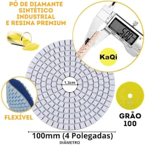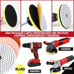 Transforme o acabamento das suas superfícies com o Kit Lixas Diamantada 4 Polegadas 100mm da KaQi Desenvolvido para oferecer o melhor polimento e acabamento, é perfeito para quem busca resultados profissionais, tanto em pedras como granitos, mármores, cerâmicas, quanto ardósia, calcário, dekton, quartzo, porcelanato, pedra projetada, concreto, nanoglass, super nano, vidro e muito mais. Seu lixamento pode ser a seco e a úmido, o que proporciona um processo mais rápido, sem gerar calor excessivo. Assim, é possível garantir um resultado sem manchas ou falhas, e ainda favorece um efeito brilho d'água incrível