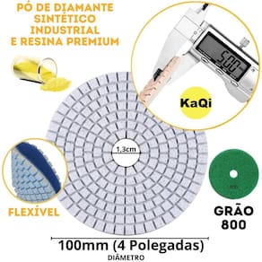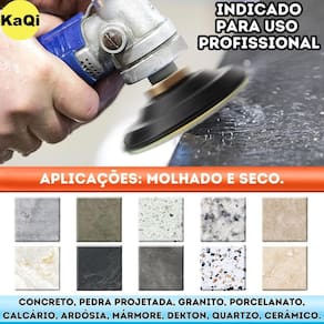 10 X Lixas Discos Grão Liso 4 Pol.100mm Diamantada Granito Mármore KaQi GRÃO: 800 Kit 10 Lixas Diamantada Grão Disco Liso 4 Polegadas 100mm KaQi Para Desbaste, Polimento, Acabamentos. Lixamentos Seco e Úmido. Ideal para profissionais e entusiastas de reformas e construção. Alta qualidade, resistência e desempenho superior. Transforme o acabamento das suas superfícies com o Kit Lixas Diamantada 4 Polegadas 100mm da KaQi Desenvolvido para oferecer o melhor polimento e acabamento, é perfeito para quem busca resultados profissionais, tanto em pedras como granitos, mármores, cerâmicas, quanto ardósia, calcário, dekton, quartzo, porcelanato, pedra projetada, concreto, nanoglass, super nano, vidro e muito mais. Seu lixamento pode ser a seco e a úmido, o que proporciona um processo mais rápido, sem gerar calor excessivo. Assim, é possível garantir um resultado sem manchas ou falhas, e ainda favorece um efeito brilho d'água incrível Principais características: 1. Durabilidade Extra, alta resistência ao desgaste, longa vida útil e desempenho, além de excelente performance em diversos tipos de materiais. 2. Acabamento Impecável no desbaste e polimento de superfícies de pedra, mármore, calcário, ardósia, porcelanato e outros, sem deixar manchas ou marcas indesejadas. Pode ser trabalhada em superfícies claras ou escuras. Oferece uma remoção eficiente de material e um acabamento uniforme. 3. Versatilidade no uso com diversas ferramentas, já que pode ser Utilizado em esmerilhadeiras, lixadeiras, politrizes e furadeiras elétricas. 4. Eficiência de Montagem, uma vez que possui sistema de fixação tipo vellcro, basta encostar a lixa no suporte do disco para grudar, e, para remover, é só puxar na direção contrária. 5. A lixa diamantada é a escolha perfeita para quem busca resultados de alta qualidade em projetos de marmoraria, granito, granilite, porcelanato, cerâmica e muito mais. Não perca a chance de ter um acabamento impecável em suas reformas e projetos. Por que escolher um produto KaQi Facilidade de uso: O sistema de vellcro para fixação da lixa facilita a troca rápida e segura, além de funcionamento em elevado RPM sem soltar. Devido à flexibilidade, aceita trabalhos em superfícies planas, côncavas, convexas e bordas. Muito comumente utilizada para bancadas, boleados, pias, rodapés, etc. Eficiência Profissional: Ideal para trabalhos de polimento e acabamento em pedras, pisos e demais superfícies ásperas ou duras. Compatibilidade: permite uso em esmerilhadeiras, politrizes, parafusadeiras e lixadeiras. Modo de uso: aceita lixamento tanto, a úmido, quanto, a seco. No úmido utiliza-se com uma politriz úmido de qualquer marca que aceite um prato com rosca M14 ou máquina polidora utilizada em indústrias de mármore e granito para polimento nas bordas da pedra. Quando o uso é a seco, aceita lixadeiras, esmerilhadeiras e politrizes. Em ambos os casos, basta encostar o costado de tecido adesivo ao disco prato suporte com que também tenha vellcro, e então fazer o devido uso. Especificações: 10 x Lixas DÁgua 4 Pol. 100mm Disco Diamantado KaQi GRÃO. Diâmetro: 100mm 4 Polegadas . Fura central: 1,3cm diâmetro. Espessura 1 unidade: 0,4cm. Maleabilidade: flexível. Lixamentos: seco e úmido. RPM: ideal entre 3000 a 5000 rotações por minuto. Material da lixa: diamante sintético industrial e resina premium. Costado: tipo vellcro. Fácil de fixar e remover. Medidas da caixa: 10cm x 10cm x 4,5cm. Peso da caixa: 0,2kg. Marca: KaQi Magazine Girassol . Confira o grão desejado, ANTES de concluir a compra. Não fazemos alterações posteriores em pedidos. Imagens do anúncio são ilustrativas. Utilize sempre EPI para trabalhos com mais segurança.