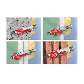 A DuoPower da fischer oferece bons valores de fixação graças aos 2 componentes:o componente cinza de nylon de alta qualidade ativa automaticamente, independentemente do material de construção, o princípio de funcionamento ideal expansão, adaptação, torção para uma melhor aderência. A ala de expansão dos componentes vermelhos reforça a expansão segura e oferece segurança adicional aos componentes cinzentos. Rotação simples do parafuso e u0022extraçãou0022 correta no final. Parafuso não gira excessivamente. O rebordo incorporado na cabeça da bucha impede que esta se afunde na perfuração.Vantagens- Dois materiais componentespara os melhores níveis de carga e funções inteligentes, dependendo da superfície.- A melhor resposta possível fator Feelgood das buchas. É visível quando a bucha fixa perfeitamente.- A borda da bucha impede que ela escorregue para dentro da perfuração.- As bordas anti rotação impedem que a bucha gire também.- Devido à sua grande profundidade de ancoragem a DuoPower é especialmente apropiadas para fixações en materiais perfurados, concreto poroso e para placas de gesso.Compatíveis:concreto, Tijolo sólido, Concreto celular, Tijolo verticalmente perfurado, Tijolo perfurado de silicocalcário, Gesso cartonado, Placa de gesso e placas de fibra de gesso, Blocos ocos em concreto, Lajes de pavimentos com cavidades, em tijolo e concreto ou , Pedra naturalAglomerado, Painel sólido de gesso, Tijolo sólido em cocretoFuncionamentoA DuoPower também é adequada para montagem através de instalação pré posicionada e de encaixe.A composição dos dois materiais e as múltiplas habilidades de funcionamento expansão, adaptação e fixação expandem a variedade de aplicaçõespara cargas médias-altas.O comprimento do parafuso requerido é dado por: o comprimento da bucha + espessura do material à fixar + o comprimento do diâmetro do parafuso.Adequado para parafusos de madeira, bem como parafusos aglomerados.No caso de placas de fixação, a parte não rosqueada do parafuso não deve ser maior que a espessura.Carga:concreto = 110 kgBloco = 25 kgDrywal = 15 kg Marca: Não Informado Ean: 1000000181425