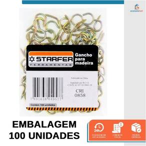 CARACTERÍSTICAS TÉCNICAS: Material: Aço carbono zincado Especificação: 19x80 Medida (Diâmetro x Largura): 3,3 x 49 mm Forma da rosca: Atarraxante Sistema de aperto: Manual Forma da cabeça: Arredondada Quantidade: 100 unidades Marca: Starfer Ref.: 7022247