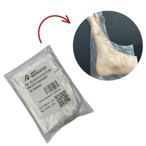 Botinhas plásticas descartáveis transparente sem elástico, indicado para uso em clínicas de estética e salões de beleza, tanto no processo de hidratação dos pés, como para proteger os pés em bacias de pedicure de hidromassagem, promovendo uma proteção contra o contato direto dos clientes.Não contém hidratante.