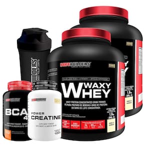 Waxy whey 2kg baunilha + bcaa 100g + creatine 100g + shaker