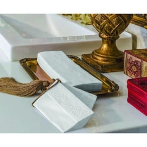 Guardanapos ou toalhinhas de papel para lavabo com barrado modelo Clássico, folhas dobradas individualmente com gramatura superior para uma melhor eficiência de absorção, uma toalhinha de lavabo é o suficiente para a secagem das mãos, mais higiênica por ser descartável.