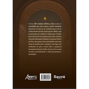 O livro 100 verdades bíblicas sobre o céu e a eternidade que vale a pena o crente relembrar apresenta, em blocos, as verdades que já são do conhecimento de todo crente que lê a Bíblia e que se preocupa em conhecer o lugar que o Senhor Jesus disse que iria preparar para nossa morada, trazendo informações fundadas na própria Palavra de Deus, não apenas como curiosidades, mas como forma de motivar-nos a adentrar esse lugar real confiantes de que o nosso Deus o preparou incomparavelmente melhor do que este em que vivemos presentemente e onde passaremos a eternidade. Marca: SAUVÉ