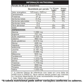 100% whey é um suplemento a base de proteína concentrada do soro do leite whey protein concentrate , matéria-prima elaborada com alta tecnologia, de elevado valor biológico, rápida digestibilidade e alta concentração de aminoácidos essenciais, que são fatores de relevância para auxiliar a síntese proteica muscular. O consumo de suplementos proteicos, associado à uma alimentação saudável e prática de atividade física auxilia na formação de músculos e ossos. 100% whey fornece 20g de proteína