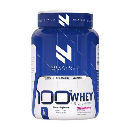 100% Whey Fuze Com Beta Alanina 960G - Sabor StrawberryBENEFÍCIOSPromove o aumento da imunidade, auxiliando na ação de antioxidantes.Auxilia em uma nutrição mais completa pois é rico em aminoácidos essenciais.Promove maior energia e disposição do organismo.Construção e manutenção muscular.Evita o CatabolismoRECOMENDAÇÕES DE USOMisturar um ou dois medidores a cerca de 250 ml de água após o treino. Marca: Nitra Fuze