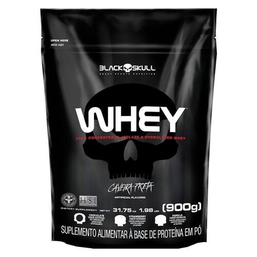 100% whey hd chocolate 900g refil - black skull whey 100% hd é mais um mega suplemento da linha caveira preta composto por três tipos de whey protein concentrado, isolado e hidrolisado , ele é uma ótima opção para auxiliar no ganho de massa muscular além disso, sua composição conta também com a adição de bcaa, aminoácidos de cadeia ramificada que contribuem para uma melhor recuperação pós-treino. Um dos suplementos mais consumidos do mundo atualmente por diversas áreas no esporte como também na nutrição clínica, derivado do soro do leite, mais conhecido como whey protein, garante proteína de alto valor biológico com objetivos de manutenção muscular, auxiliar no anabolismo e recuperação das fibras musculares de praticantes de atividades físicas em geral até em pacientes que necessitam de uma dieta enteral. As proteínas obtidas a partir do soro do leite são classificados conforme o seu grau de processamento, como: proteínas concentradas, isoladas e hidrolisadas. ingredientes: proteína concentrada do soro do leite, proteína isolada do soro de leite, proteína hidrolisada do soro do leite, l-leucina, l-isoleucina, l-valina, cacau em pó, aromatizante, espessante goma xantana, acidulante ácido cítrico, edulcorantes sucralose e acessulfame de potássio. Alérgicos: contém derivados do leite. Pode conter amendoim e derivados de soja, ovo e trigo. Contém lactose. Não contém glúten.