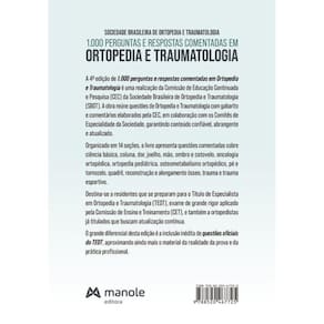 A 4ª edição de 1.000 perguntas e respostas comentadas em Ortopedia e Traumatologia é uma realização da Comissão de Educação Continuada e Pesquisa (CEC) da Sociedade Brasileira de Ortopedia e Traumatologia (SBOT). A obra reúne questões de Ortopedia e Traumatologia com gabarito e comentários elaborados pela CEC, em colaboração com os Comitês de Especialidade da Sociedade, garantindo conteúdo confiável, abrangente e atualizado. Organizado em 14 seções, o livro apresenta questões comentadas sobre ciência básica, coluna, dor, joelho, mão, ombro e cotovelo, oncologia ortopédica, ortopedia pediátrica, osteometabolismo ortopédico, pé e tornozelo, quadril, reconstrução e alongamento ósseo, trauma e trauma esportivo. Destina-se a residentes que se preparam para o Título de Especialista em Ortopedia e Traumatologia (TEOT), exame de grande rigor aplicado pela Comissão de Ensino e Treinamento (CET), e também a ortopedistas já titulados que buscam atualização contínua. O grande diferencial desta edição é a inclusão inédita de questões oficiais do TEOT, aproximando ainda mais o material da realidade da prova e da prática profissional. Marca: Não Informado
