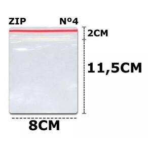 1000 Saco Fechamento Zip N04 8x115mm Fecho Hermético 1pct O Saco Zip plástico fecho hermético é um produto bastante versátil, uma vez que pode armazenar de produtos tóxicos até alimentos.Fabricado em poliestireno de baixa densidade, o Saco plástico fecho hermético possui um sistema de fechamento simples e moderno, através de dois trilhos plásticos, que possibilitam manter a integridade dos produtos que se encontram dentro do saco.Sem que haja perda de aderência. Isso leva uma praticidade ao consumidor.Veja quão versátil é o Saco plástico fecho hermético conhecendo alguns possíveis produtos aplicáveis a ele:Bijuterias, Vestuários e roupas, Todo tipo de alimentos, Laboratórios, Armazéns em gerais, Viagens, e Etc.Descrição:Cor: TransparenteTamanho: 8x11,5cm.Medidas variáveis até 0,5 cm para mais de acordo com os fabricantes.LIVRE DE BPAMarca: TalgeOBS: NÃO PERSONALIZAMOS