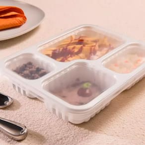 A bandeja de refeição Galvanotek G324 é prática, resistente e versátil, ideal para o armazenamento e transporte de alimentos. Com capacidade de 1225ml, possui 4 divisórias que permitem separar diferentes tipos de preparações sem misturar sabores ou texturas. Produzida em material de alta qualidade, é própria para freezer e micro-ondas, garantindo praticidade no dia a dia e facilitando o consumo das refeições em qualquer lugar. Na cor branca, apresenta design moderno e profissional, sendo uma excelente opção para marmitarias, restaurantes e uso doméstico. O kit contém 100 unidades, proporcionando economia e eficiência para quem precisa de embalagens confiáveis e funcionais.