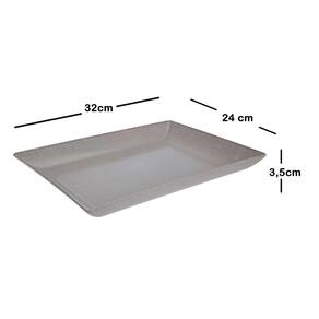 Demais características: -dimensão: 32cm comprimento x 24cm largura x 3,5cm altura - Vai à lava louça; - Microondas de 2 a 3 minutos - Produto atóxico;