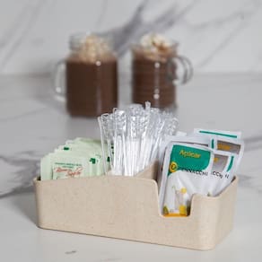 Conta com divisória para colocar sachês, palitos etc. duráveis e com qualidade.