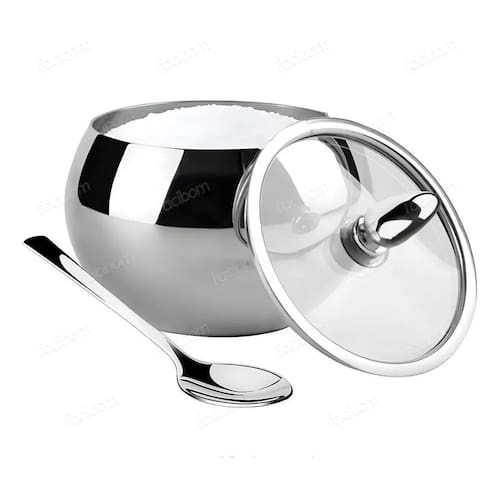 10X Açucareiro Em Aço Inox Com Tampa De Vidro E Colher Qual