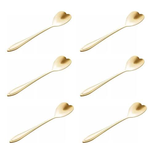 10X Jogo De Colher Chá E Café Coração Dourada 6 Peças - Lux