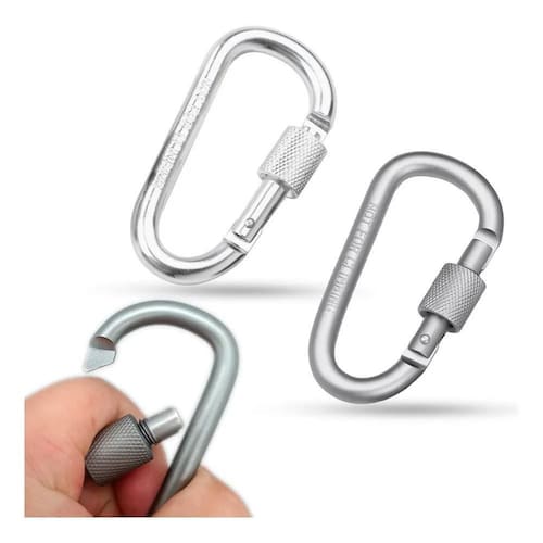 10X Kit 2 Mosquetão Rosca Gancho Alumínio Chaveiro Multiuso