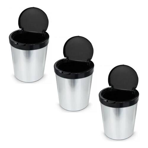 10X Kit 3 Lixeira Cesto Cozinha Banheiro 10L Inox Tampa Cli
