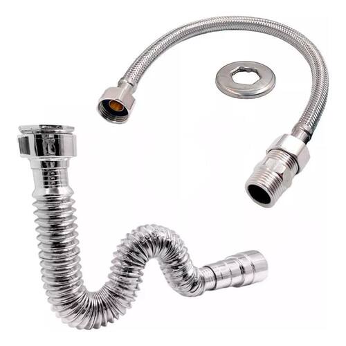 10X Kit Sifão + Rabicho 60Cm Metal Inox Flexível Mangueir