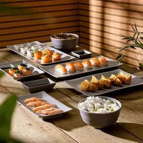 12 Bandejas Retangulares 29x14x2cm Travessa de melamina Lyor para Servir Petiscos Sushi.