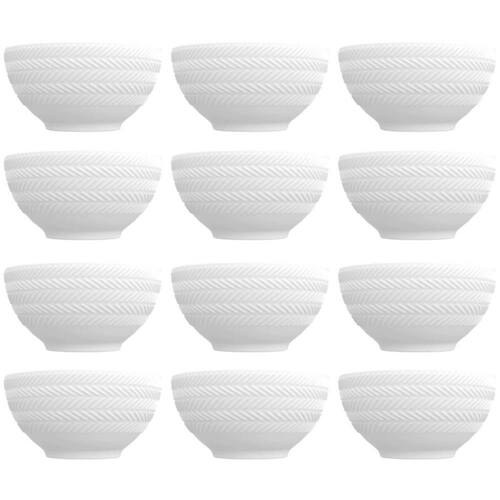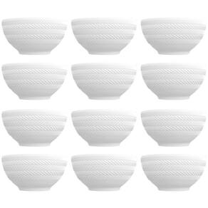12 Bowls de Porcelana Germer 400ml Branco com Relevo Chevron Cumbuca para Petiscos Caldos Sobremesas