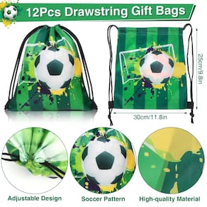 - Bolsas de lembrancinhas de festa de futebol – Esta bolsa de cordão é o nosso produto cuidadosamente personalizado. Existem 3 estilos de futebol e 6 padrões de futebol, e cada bolsa tem padrões diferentes na frente e atrás. Esta bolsa de presente vem com um cordão, para que você possa ajustar o tamanho da abertura da mochila puxando o cordão. O tamanho de cada bolsa é de 30 x 25 cm, o que a torna um ótimo tamanho para todos. É conveniente para as pessoas usarem ao viajar, brincar e participar de aulas