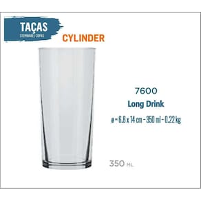 12 Copos Cylinder 320ml - Tubo Long Drink Copo Cylinder 320ml - Long Drink - Coquetel - Tubo