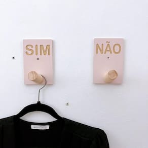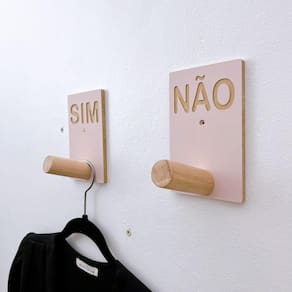 Trio de penduradores | Sim Não | com pino inclinado Ideais para uso comercial em provadores de loja, facilitando a escolha das peças e mostrando todo o cuidado que o lojista moderno tem com seus clientes!