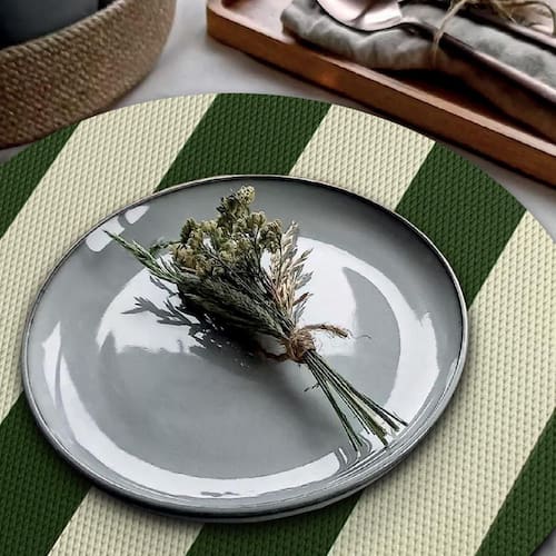 Alto padrão - mesa elegante em todos os momentos esse jogo americano proporciona um excelente efeito visual à mesa e combina com diversos tipos de louças e ambientes. feito com material de alto padrão de qualidade, não retém resíduos de alimentos e é muito fácil de limpar proporcionando praticidade para o dia a dia. vantagens - material de alto padrão - impermeável - prático e versátil - flexível e resistente - design exclusivo - fácil de limpar: basta passar um pano úmido e sabão neutro contém: 12 peça s dimensões: 38cm de diâmetro material: pvc somos fabricantes, por isso o melhor preço para esse produto. um produto exclusivo idealiza comercio de utilidades