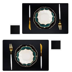 12 jogos americanos mesa jantar impermeável + porta copos Cor: preto Tamano: 43x30 Jogo americano couro retangular + porta copos