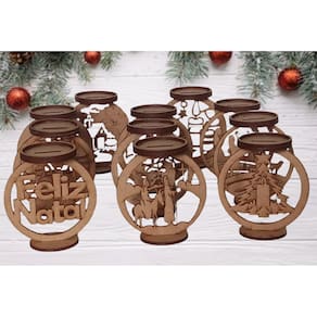 Feito com madeira mdf 3 mm cor natural da madeira e recorte a laser.