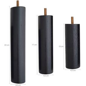 Garantia: 90 Dias / Peso: 1,870Kg / Cor: Preto / Ref: 79DM07PT12RFESP Angulo Diagonal Elavado dos Pés: 9cm ; 5,157° (Graus) Dimensões Grande: 4,5cm (C) x 4,5cm (L) x 22cm (A) Dimensões Médio: 4,5cm (C) x 4,5cm (L) x 17cm (A) Dimensões Pequeno: 4,5cm (C) x 4,5cm (L) x 13cm (A) Dimensões Prisioneiro: 2cm Cuidados: Não lavar com materiais abrasivos. Obs: Para a fixação dos pés é necessário que o local possua bucha americana para rosca 5/16, pois os pés possuem a rosca 5/16. Caso não possuir, você encontra estas buchas em casa de ferragens, basta solicitar pelo modelo informado.
