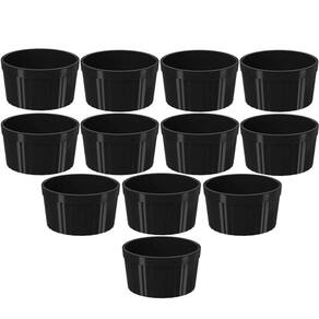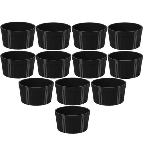 Garantia: 90 dias / Peso: 0,432kg / Cor predominante: preto / Ref: 7794462743584; Conteúdo: 12 ramekins canelados; Medidas: 8cm (D) x 4,7cm (A); Diâmetro da base: 7cm; Material: polipropileno; Capacidade: 150ml.