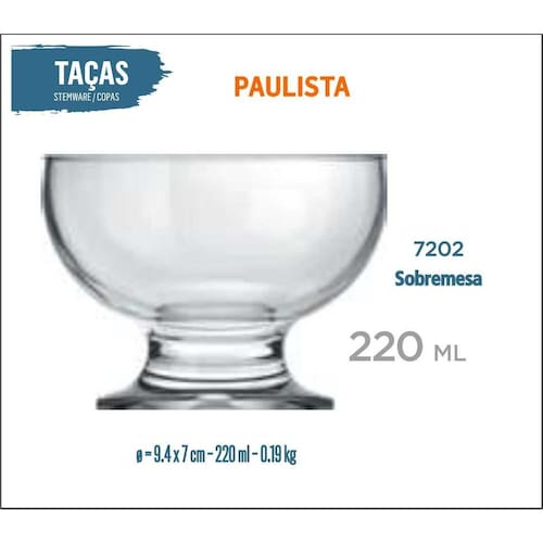 Taça paulista 220ml - Sobremesa Pudin Sorvete Pavê