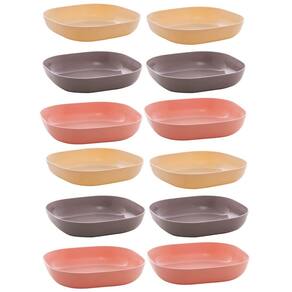 Garantia: 90 dias / Peso total: 336g / Cor predominante: colorido / Referência: 7798138673151 Dimensões de cada tigela: 14,5cm (C) x 14,5cm (L) x 3cm (A); Conteúdo: 12 bowls quadrados; Materiais: polipropileno e bambu ecológico. Obs.: o produto é enviado conforme cores disponíveis em estoque. Não é possível escolha de cor.
