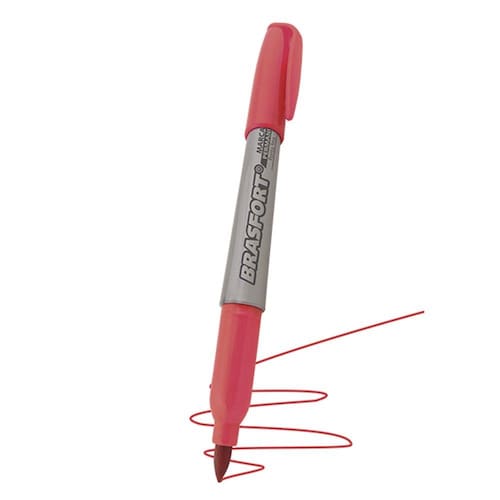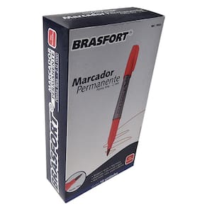 12Un Caneta Marcador Permanente Ponta Fina Vermelha Brasfort