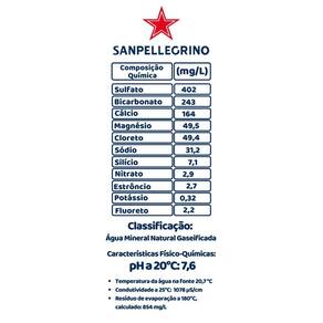 12x Água Mineral Italiana SAN PELLEGRINO com gás 505ml Água de perfil aromático, discreto e efervescência delicada. Ideal para ser servida com vinho tinto. Reverenciada como o Champagne das águas minerais, a água italiana S. Pellegrino é conhecida em todo o mundo como simbolo de vida italiano (Nazionalitá). Sua fonte está localizada a 70 km de Milão, na cidade de S.Pellegrino Terme, região da Lombardia, norte da Itália. Começou a ser engarrafada em 1899 e décadas depois vem se consolidando como a água preferida dos grandes Chefs e Sommeliers do mundo, além de ser parceira dos melhores prêmios de gastronomia do mundo. Com sua perlage (borbulhas) delicadas e equilibradas, acompanha e valoriza vinhos tintos e pratos a base de carne e molhos intensos.