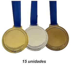 15 Medalhas de Aço 6cm Ouro Prata Bronze Centro Liso Esporte - Color: Ouro