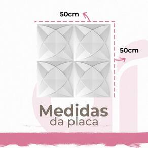 Tamanho de cada placa: 50x50cm Área de cobertura de cada placa: 0,25m São necessárias 4 placas para render 1 metro quadrado.